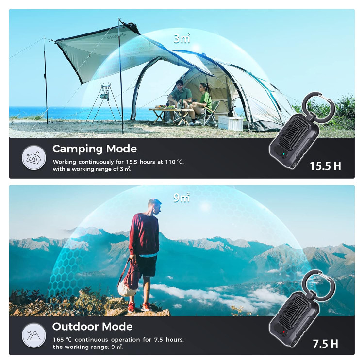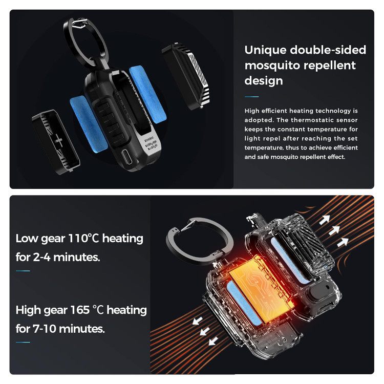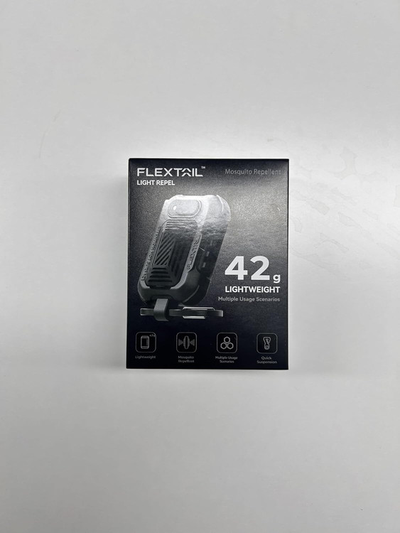 【سبک و راحت】 وزن LIGHT REPEL تنها 42 گرم، حجم 7.3 * 4.4 * 2.8 سانتی متر است و رویه آن مجهز به حلقه آویز است که می توان آن را به راحتی بر روی لباس، کوله پشتی یا بانچو آویزان کرد و یا با حلقه آویز روی میز پشتیبانی می شود.