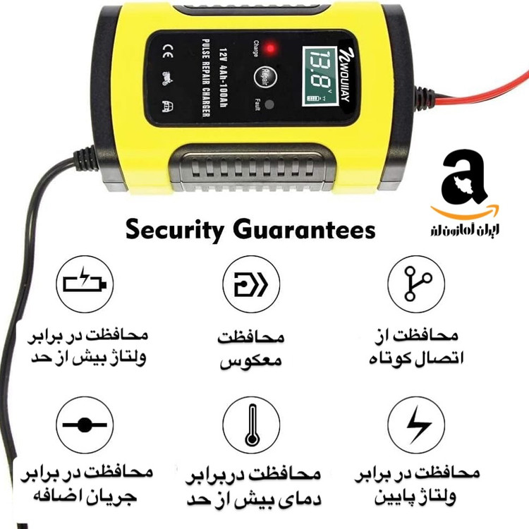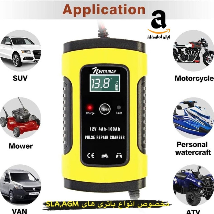 - کاربرد : شارژر باتری هوشمند خودکار چندگانه مناسب خودرو، موتور و انواع وسایل نقلیه موتوری