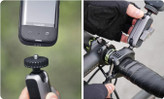 نصب بر روی دوچرخه کوهستانی : استفاده از پایه فرمان ارائه شده به شما این امکان را می دهد که دوربین خود را با استفاده از فاصله دهنده های گیره میله کوچک یا بزرگ روی اکثر دسته های استاندارد با قطر 89 میلی متر تا 280 میلی متر (0.35 تا 1.10 اینچ) نصب کنید. گیره دسته دارای یک پایه قابل تنظیم است که به شما امکان می دهد دوربین را تقریباً در هر جهت دلخواه قرار دهید.
