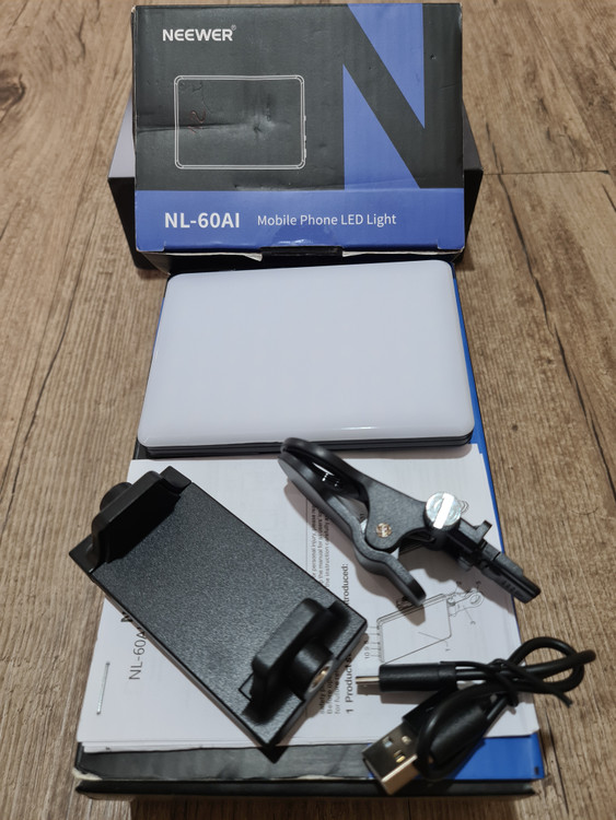 یک گیره دایره ای نور را به گوشی هوشمند، تبلت یا لپ تاپ شما تا ضخامت 0.7 اینچ (18 میلی متر) متصل می کند و دوربین جلو را بدون پوشش نگه می دارد. یک نگهدارنده تلفن برای گوشیهای هوشمند با عرض ۲ اینچ تا ۳.۳ اینچ (۵۲ تا ۸۵ میلیمتر) قرار میگیرد و چراغ را برای استفاده به عنوان چراغ پرکننده در پشت گوشی نصب میکند. دو سوراخ پیچ 1/4 اینچی نور را مستقیماً روی هر پایه نور نصب می کنند.