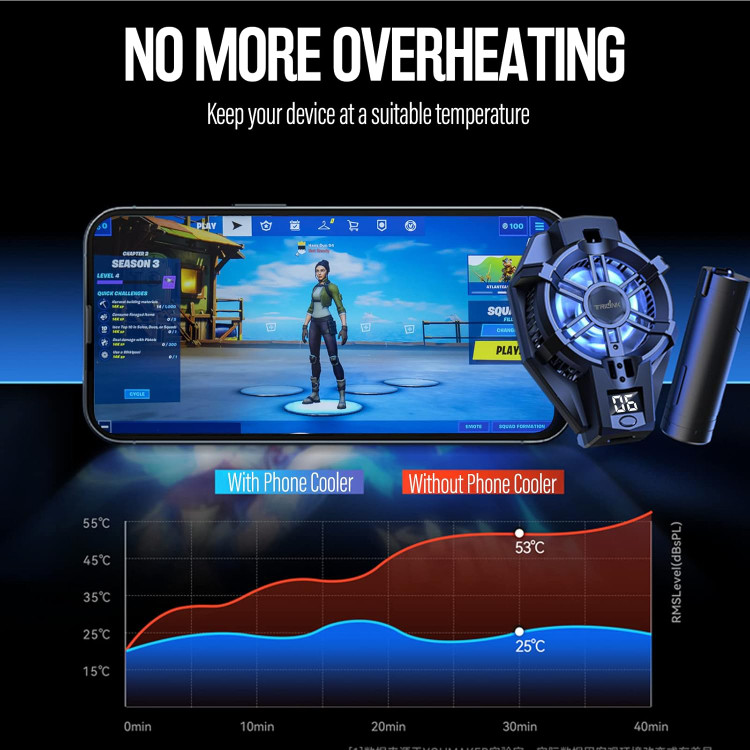 ✅ فناوری خنک کننده پیشرفته - خنک کننده تلفن همراه TRILINK از جدیدترین فناوری رادیاتور یخچال نیمه هادی استفاده می کند که می تواند دستگاه شما را فوراً خنک کند و دستگاه تلفن همراه شما را در دمای مطلوب بدون کم نور شدن صفحه نمایش، یخ زدن یا خاموش شدن خودکار به دلیل دماهای بالا حفظ کند و از عملکرد آن جلوگیری کند. به خطر افتاد. شما می توانید با نمایشگر ویژه دمای زنده، افزایش عملکرد را احساس و مشاهده کنید.