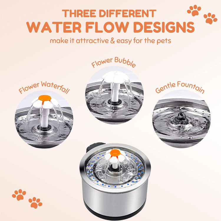 ۶.【 طراحی کلاسیک گل 】 گربه ها و سگ های کوچکتر آب جاری همراه با گل را به آب جوشاندن ملایم ترجیح می دهند. جریان های 360 درجه آب را برای اکسیژن و طراوت بیشتر هوادهی می کنند.