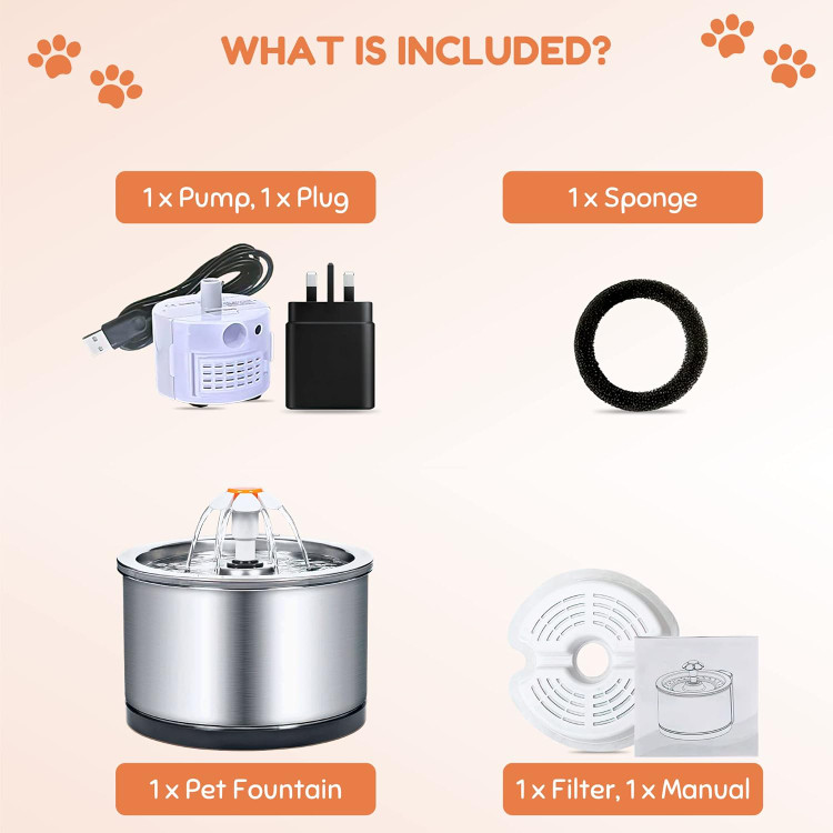 ۵. 【 PUMP بی صدا 】 پمپ ولتاژ پایین ما قابل اعتماد و بی صدا است (<30 دسی بل). فواره حیوانات خانگی از جنس استنلس استیل دارای چراغ LED است که روشن می شود.
