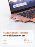 هاب 6 پورت Ugreen مدل 80856 CM380 با داشتن یک پورت Type-C بهعنوان یک محصول ویژه و چند کاربردی محسوب میشود که امکان اتصال همزمان چند دستگاه را به هم فراهم میکند. بدنه این محصول از جنس آلومینیومی است که مقاومت بسیار بالایی دارد. افراد در استفاده از این محصول نگرانی از بابت داغی و حرارت آن تجربه نمیکنند.