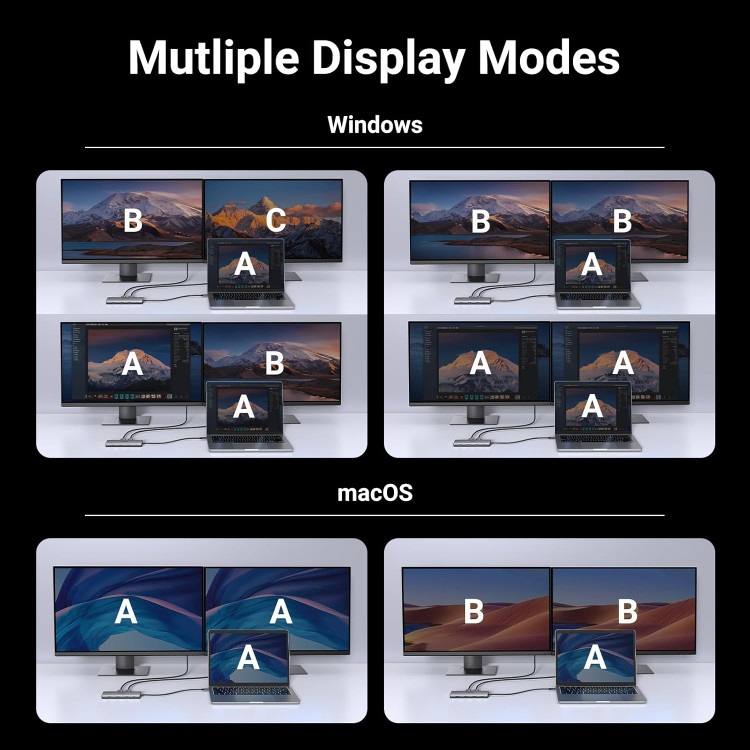 این دستگاه دو پورت HDMI را ارائه می دهد که یکی از آنها از وضوح 4K در 60 هرتز و دیگری وضوح حتی 8K در 30 هرتز پشتیبانی می کند (توجه داشته باشید: برای استفاده از این وضوح، پشتیبانی wymagana برای DP1.4 مورد نیاز است). این قابلیت به شما امکان اتصال همزمان دو نمایشگر را می دهد که به ویژه برای کسانی که با گرافیک یا ویدیو کار می کنند و همچنین برای کسانی که به سادگی فضای کاری بیشتری می خواهند مفید است.
