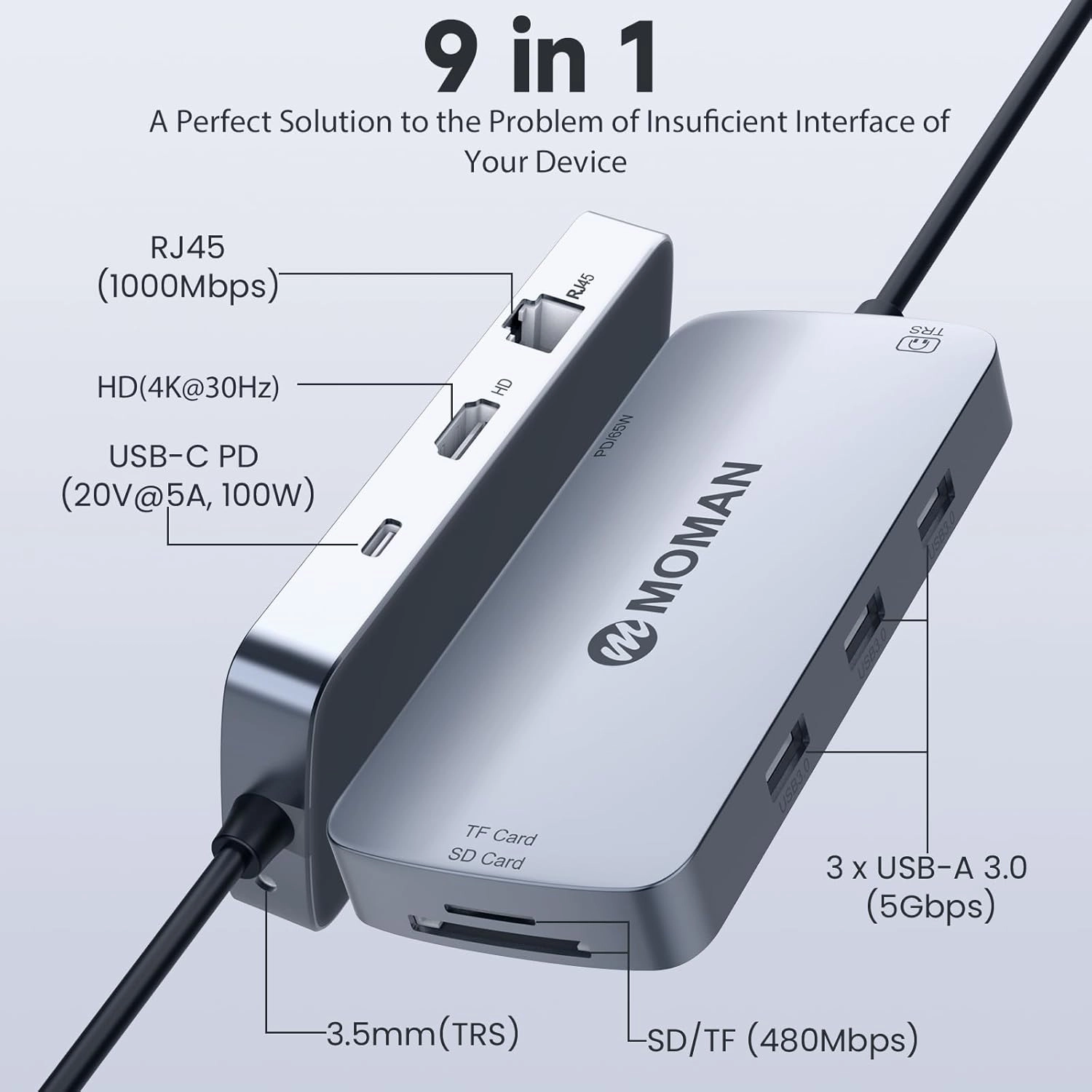 هاب 9 پورت Type-C / 4K برند : MOMAN مدل : CT9