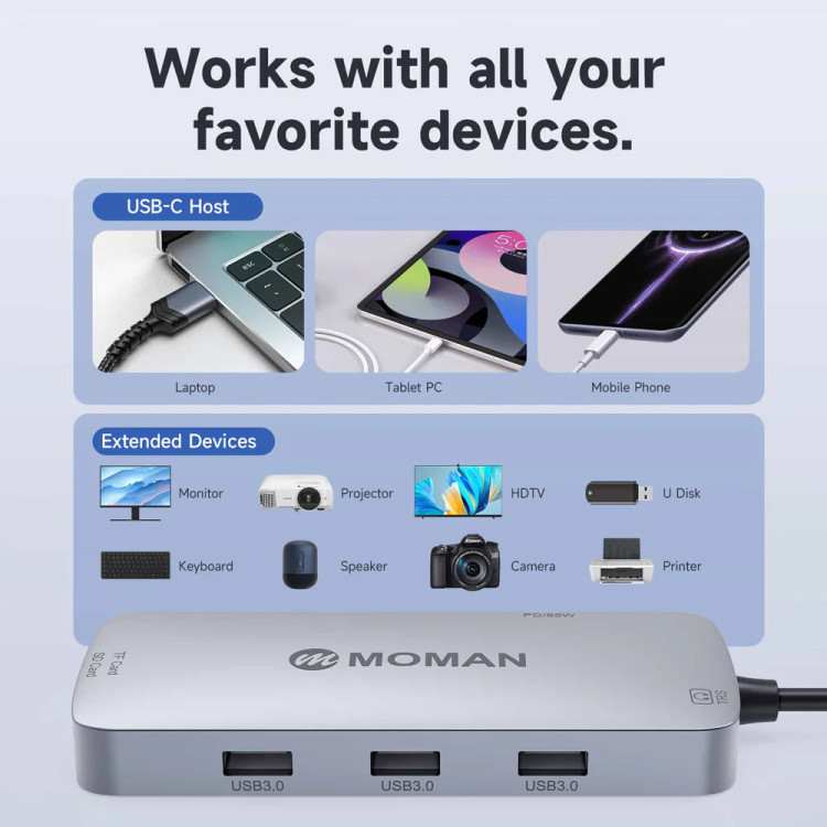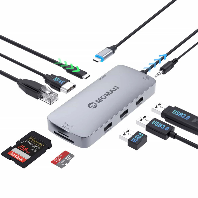 هاب 9 پورت Type-C / 4K برند : MOMAN مدل : CT9 (سفارش آمازون اروپا)