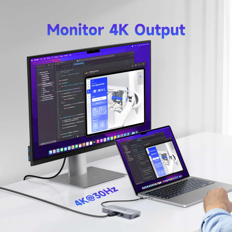 ایستگاه داک دارای یک درگاه PD 100W، یک درگاه TRS 3.5 میلی متری، یک درگاه RJ45، یک پورت HDMI، یک اسلات SD و یک اسلات TF است. پورت SD/TF از خواندن همزمان با سرعت 480 مگابیت در ثانیه پشتیبانی می کند. عملکرد منبع تغذیه PD امکان شارژ و پخش همزمان بدون نگرانی در مورد مسائل برق را فراهم می کند.