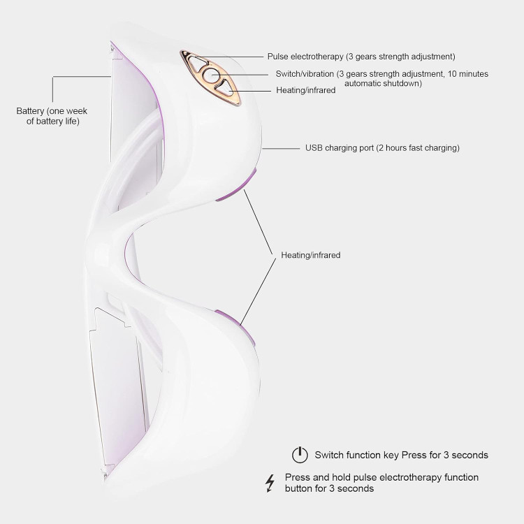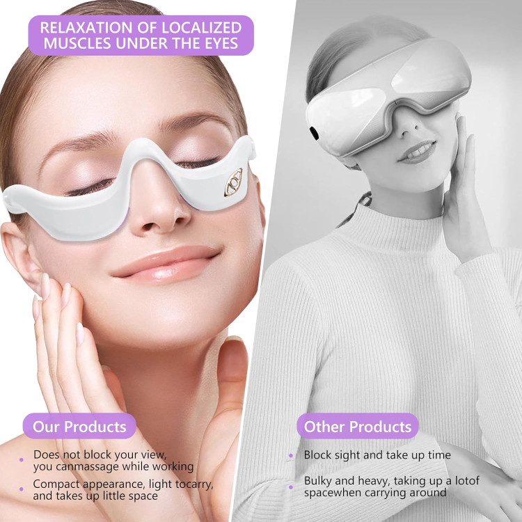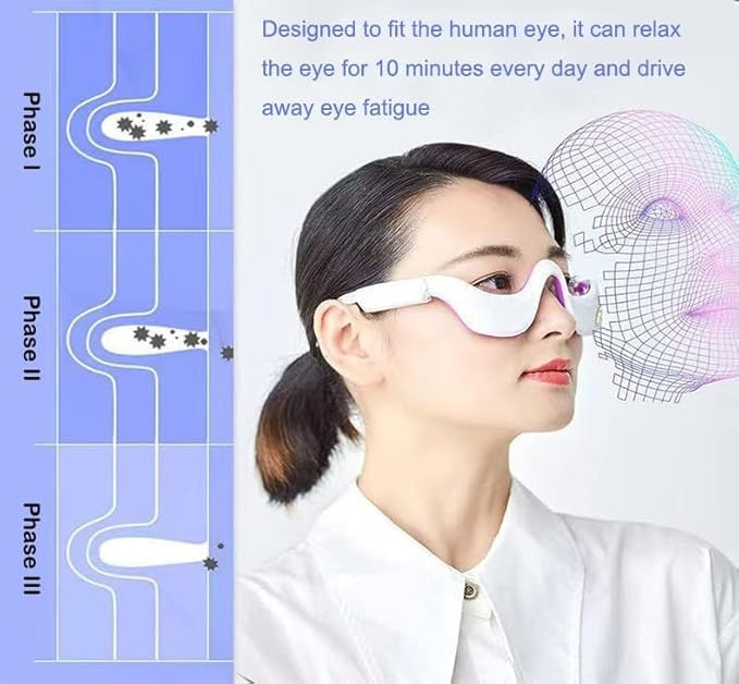 ماساژور چشم گرم شده حرارت ترموستاتیک، EMS میکرو فرکانس و لرزش فرکانس بالا را در حالتهای مختلف ترکیب میکند تا کیسههای زیر چشم را آرام کند و خستگی را از بین ببرد. برای خستگی چشم، چشم های پف کرده و خشکی چشم ایده آل است.