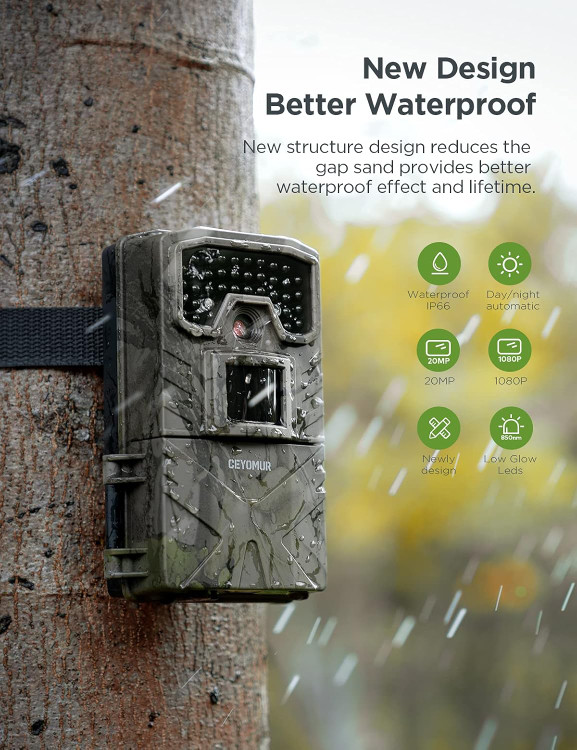 این دوربین دنباله دار جدیدترین طراحی بدنه یکپارچه نیمه باز را اتخاذ می کند. لنز و صفحه نمایش LCD در یک سمت هستند که به شما امکان می دهد زاویه لنز را به راحتی تنظیم کنید. طراحی یکپارچه تر بدنه دوربین دنباله دار و حلقه لاستیکی با کیفیت بالا عملکرد ضد آب و ضد گرد و غبار قوی را تضمین می کند. دوربین دنباله دار CEYOMUR انتخاب ایده آلی برای نظارت بر حیات وحش در فضای باز است.