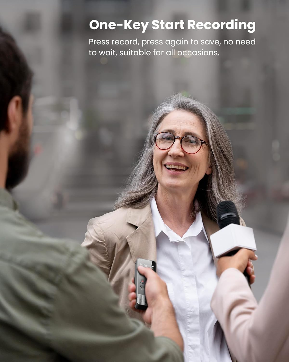 بدون تاخیر! بلافاصله ضبط کنید! دکمه قرمز را فشار دهید و ضبط در 0.01 ثانیه شروع به کار می کند، دوباره فشار دهید تا ضبط ذخیره شود. نام فایل به طور خودکار با تاریخ و زمان نامگذاری می شود. این ضبط دیجیتال ایده آل برای افرادی است که می خواهند در هر مکان و هر زمان ضبط کنند. همچنین می توانید رمز عبور روشن را تنظیم کنید تا هیچ کس جز شما از اسرار داخل آن مطلع نشود.