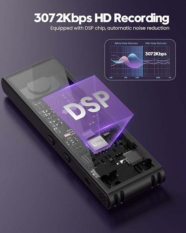ضبط با کیفیت بالا 3072 کیلوبیت بر ثانیه، دو میکروفون در بالا نصب شده است، با استفاده از روش پیکاپ کاردیوید، و ترکیب با تراشه DSP برای رسیدن به کاهش نویز عالی، کیفیت ضبط شما را تا حد زیادی بهبود می بخشد.