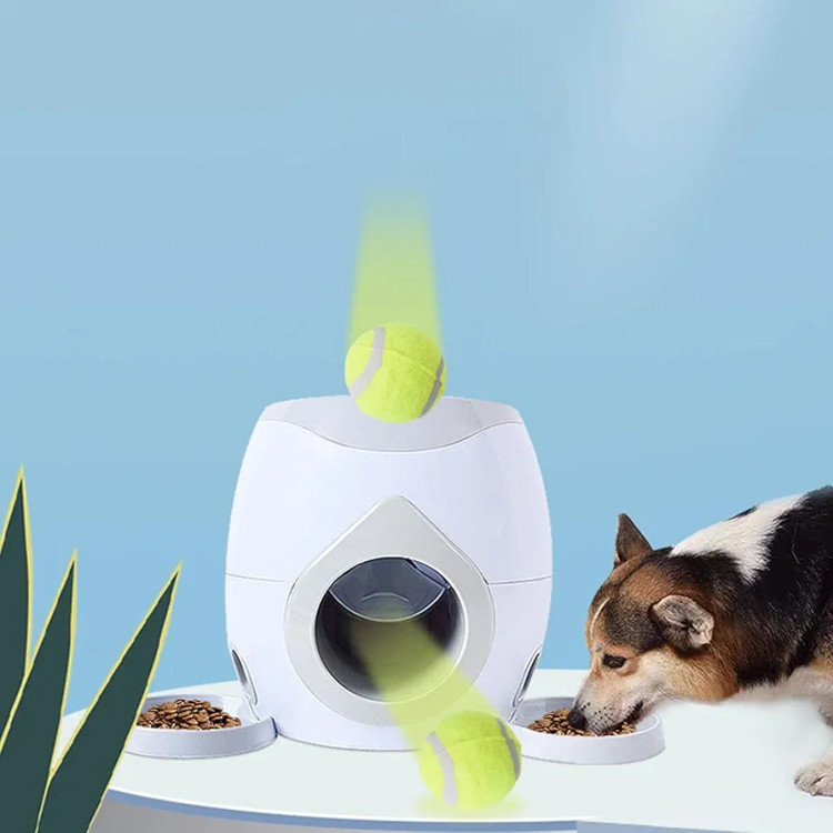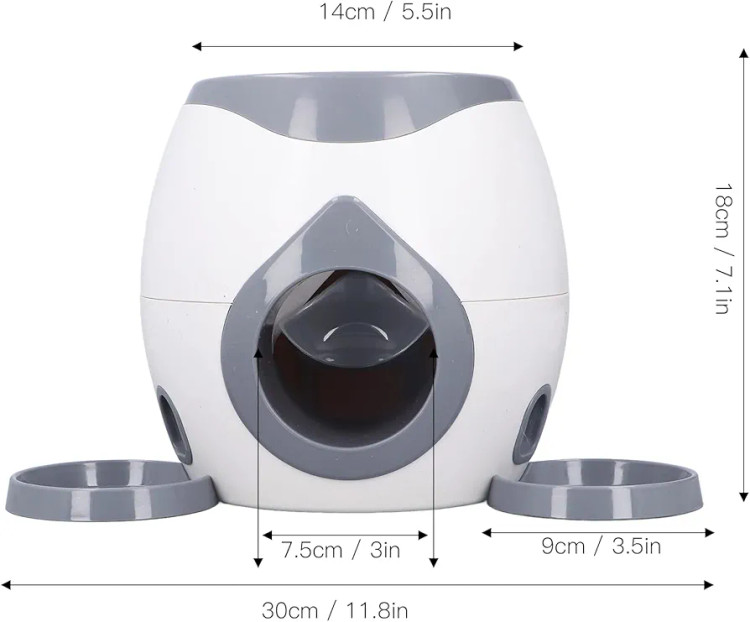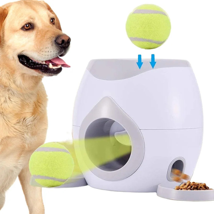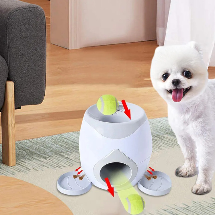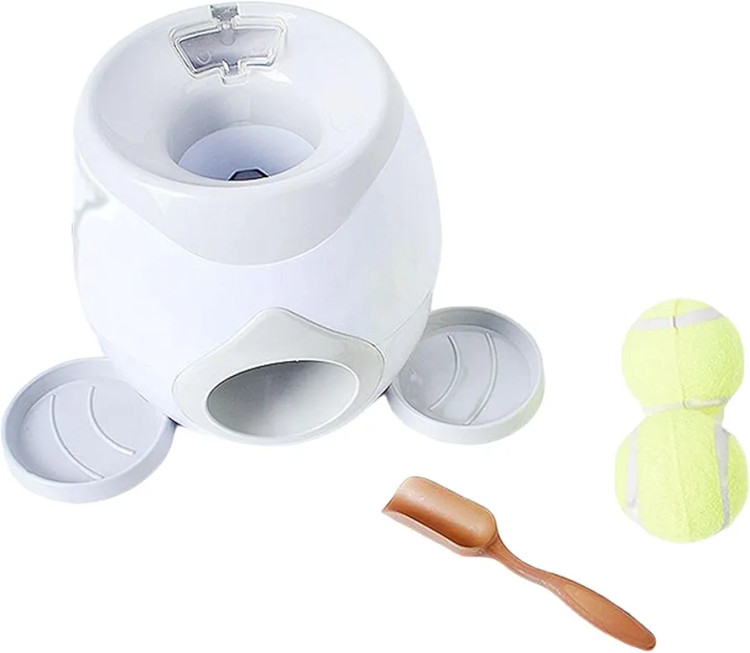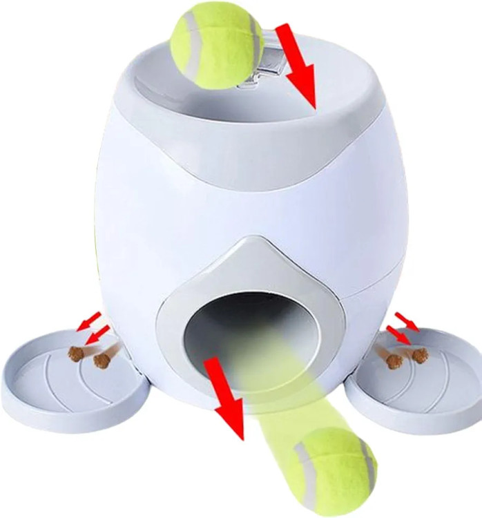 3. دستگاه دارای مخزنی جهت قرار دادن تکه های تشویقی است که هربار، زمانی که سگ توپ را در ورودی دستگاه قرار می دهد، بصورت خودکار قطعات تشویقی را آزاد کرده و در ظرف های ویژه ی کوچکی که در طرفین دستگاه قرار دارد می ریزد.به این ترتیب سگ ها خیلی زود به بازی با این دستگاه علاقمند شده و می توانند ساعت ها بدون حضور افراد دیگر، خود را سرگرم کرده و لذت ببرند.