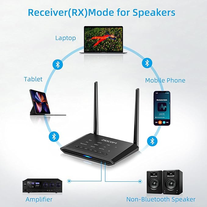 حالت دریافت : بلندگوی سیمی شما را به بلندگوی بلوتوثی تغییر می دهد، سپس می تواند سیگنال های صوتی بی سیم را از تلفن همراه و تبلت دریافت کند.