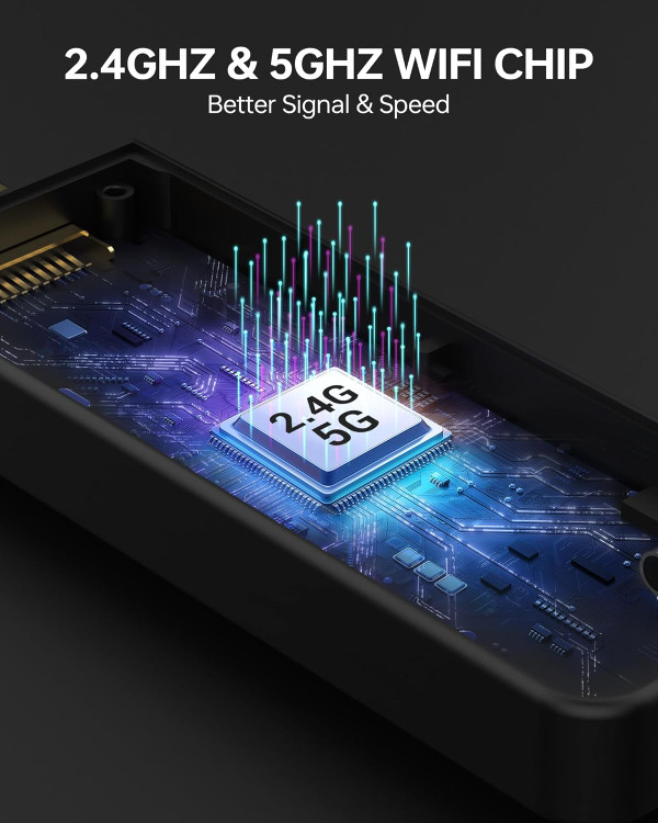 دستگاه ما از وایفای دو بانده ۵G/۲.۴ گیگاهرتز برای اتصال سریعتر و پایدار با باند ۵ گیگاهرتز و برد گسترده با باند ۲.۴ گیگاهرتز بهره میبرد که برای پخش و بازی با کیفیت بالا ایدهآل است.