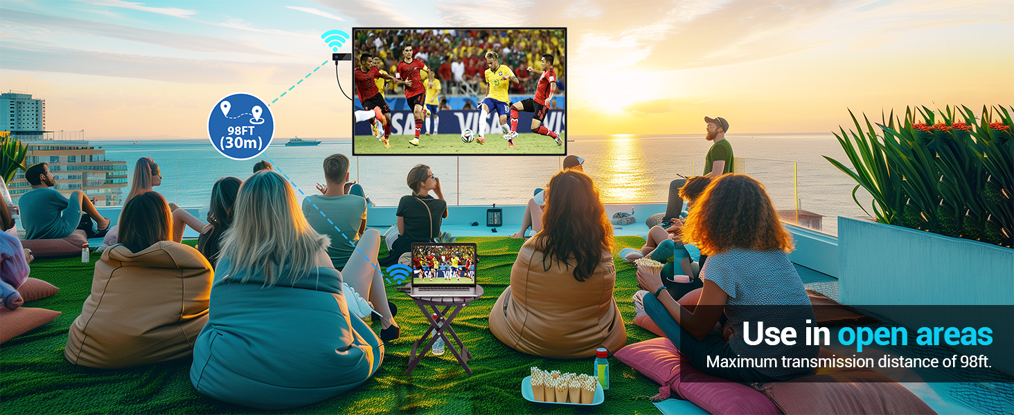 با برد تا ۹۸ فوت (۳۰ متر) در فضای باز، سیستم ما ارائه ویدئو و صدای HD قابل اعتماد را تضمین میکند.