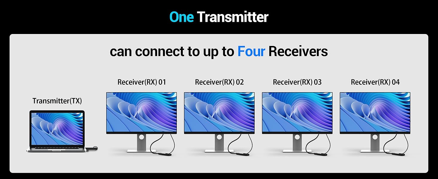 دستگاههای خود را بدون نیاز به تنظیمات پیچیده، به راحتی متصل کنید. سیستم ما از یک فرستنده به حداکثر چهار گیرنده پشتیبانی میکند و امکان پخش همزمان در چند اتاق را فراهم میکند.