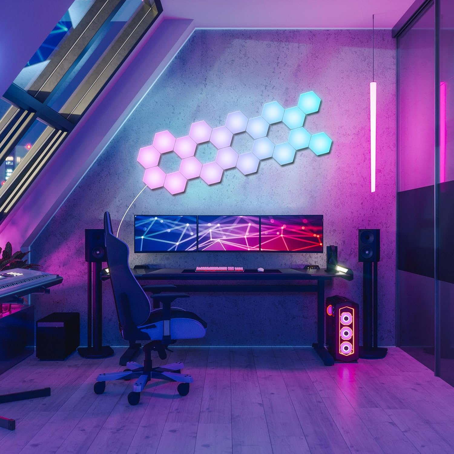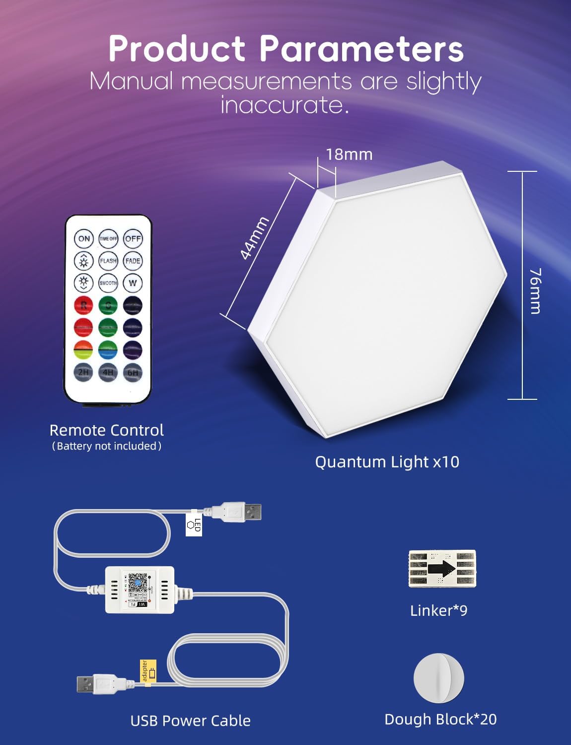 Hexagon LED Panels, 10 Pack RGB with IC Smart Wall Light Hexagon LED Wall