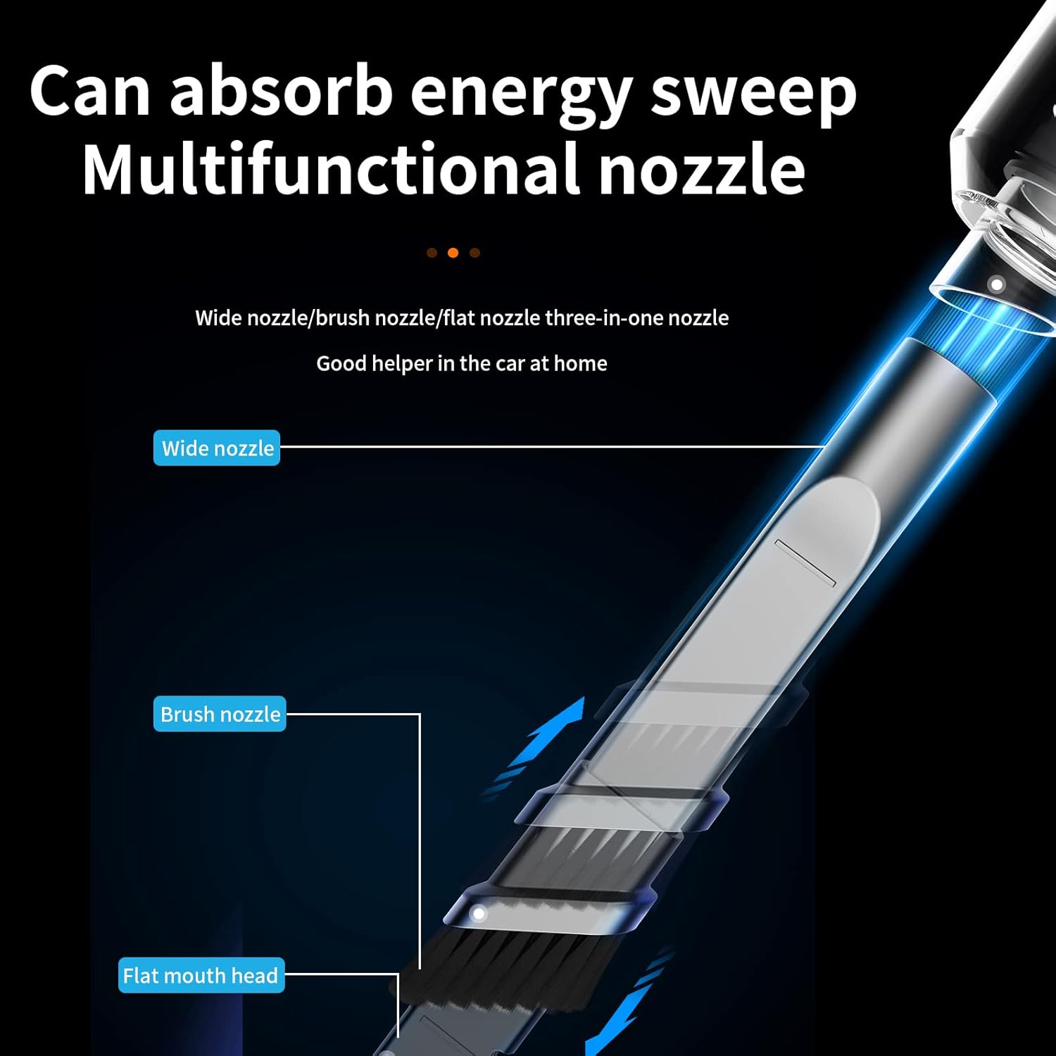 جاروبرقی دستی قابل حمل با مکش 9000 پاسکال، قدرت بالای 120 وات، مناسب برای تمیز کردن سریع روزانه خانه، محل کار، حیوانات خانگی، ماشین، کیبورد، کیف آرایش، کامپیوتر بدون سیمهای حجیم و درهمتنیده، به شما کمک میکند تا به راحتی تمیز کنید.