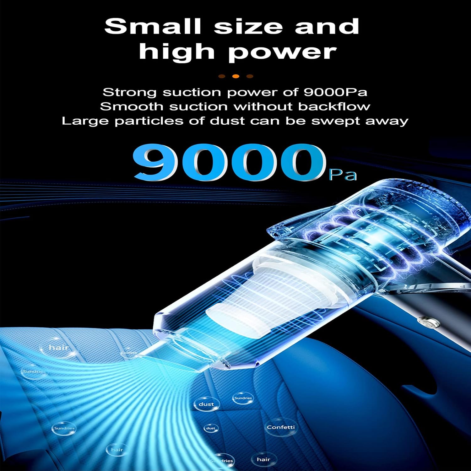 جاروبرقی دستی قابل حمل با مکش 9000 پاسکال، قدرت بالای 120 وات، مناسب برای تمیز کردن سریع روزانه خانه، محل کار، حیوانات خانگی، ماشین، کیبورد، کیف آرایش، کامپیوتر بدون سیمهای حجیم و درهمتنیده، به شما کمک میکند تا به راحتی تمیز کنید.