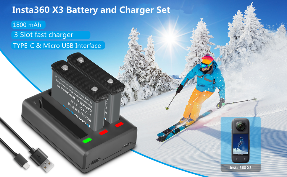 باتری REAGEAK X3 100٪ با دوربینهای Insta 360 X3 سازگار است. هر باتری دارای 3.85 ولت، 1800 میلیآمپر ساعت، ولتاژ شارژ محدود: 4.40 ولت؛ انرژی نامی: 6.93 وات ساعت است.