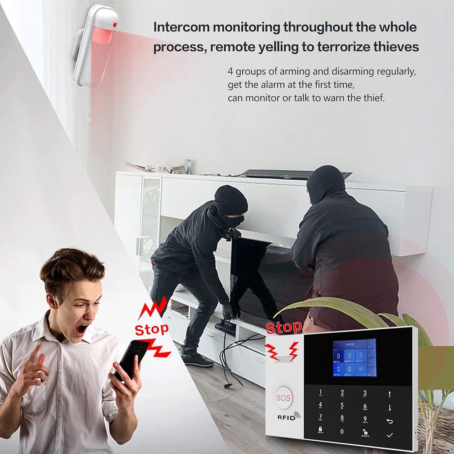 سیستم دزدگیر خانگی بیسیم PGST، وایفای+جیاسام، دزدگیر خانگی بیسیم با صفحه نمایش لمسی ۴.۳ اینچی، آژیر ۱۲۰ دسیبل، سازگار با الکسا و گوگل هوم