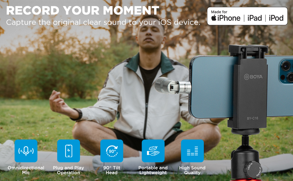 میکروفون داخلی چرخان مخصوص گوشی هوشمند، امکان موقعیت یابی ۹۰ درجه و چرخش ۳۶۰ درجه را فراهم میکند. طراحی این میکروفون کوچک تنها ۹ گرم وزن دارد و حمل و ضبط در هر زمان را آسان میکند.
