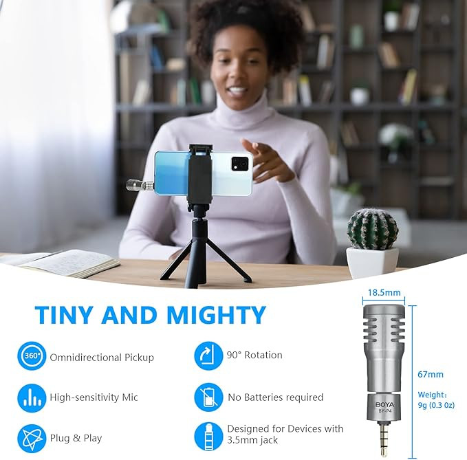 میکروفون کوچک همهجهته برای ضبط و ثبت طیف وسیعی از صداها با پاسخ فرکانسی. کاربرد گسترده این میکروفون کوچک برای پخش زنده یوتیوب یا وبلاگ ویدیویی (وبلاگ نویسی)، ضبط جلسات، کنفرانس یا مصاحبه عالی است.
