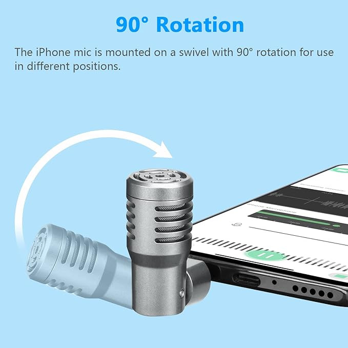 میکروفون داخلی چرخان مخصوص گوشی هوشمند، امکان موقعیت یابی ۹۰ درجه و چرخش ۳۶۰ درجه را فراهم میکند. طراحی این میکروفون کوچک تنها ۹ گرم وزن دارد و حمل و ضبط در هر زمان را آسان میکند.