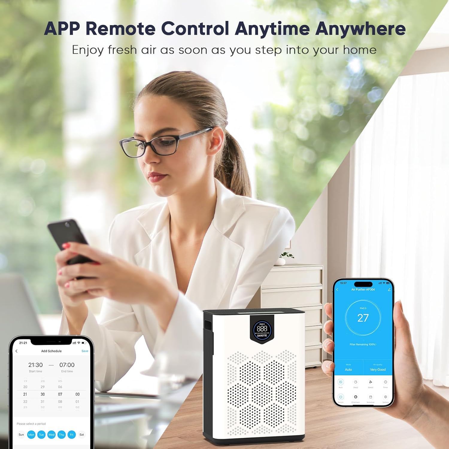 دستگاه تصفیه هوای خود را از طریق برنامه Smart Home Life ما، سازگار با Wi-Fi 2.4 گیگاهرتز، از راه دور کنترل کنید تا بدون محدودیت زمانی یا مسافتی، کیفیت هوای داخل ساختمان خود را به صورت لحظهای رصد کنید، آن را خاموش/روشن کنید، حالتها یا سرعت فن را تغییر دهید، برنامه زمانی ایجاد کنید، از تایمر استفاده کنید، میزان استفاده از فیلتر را پیگیری کنید و فیلترهای جایگزین را دوباره سفارش دهید. وقتی از سر کار برمیگردید، آن را روشن کنید و به محض رسیدن به خانه از هوای تازه لذت ببرید.