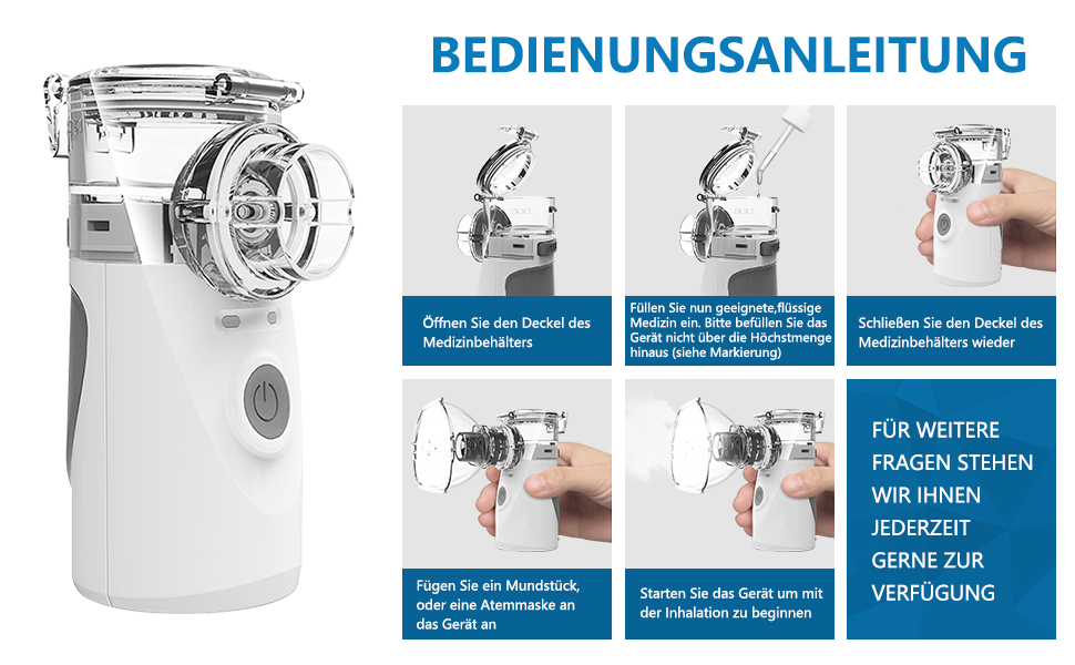 پس از مخلوط کردن داروی مایع و پوشیدن ماسک، میتوانید برای استفاده از آن، دکمه روشن/خاموش را فشار دهید. لطفاً نازل را برای تمیز کردن پس از استفاده جدا کنید.