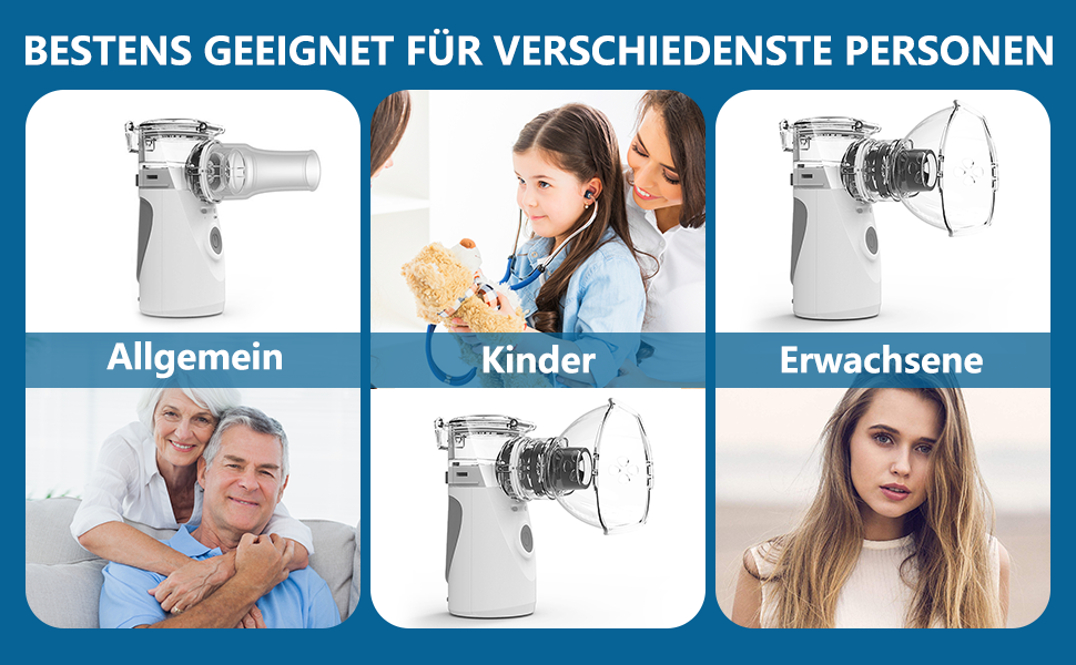 استنشاقی مخصوص بزرگسالان از فناوری اتمیزه کردن اولتراسونیک برای اتمیزه کردن داروهای محلول در آب به ذرات آئروسل کمتر از 5 میکرومتر استفاده میکند و ذرات دارو به راحتی توسط ریهها و برونشها جذب میشوند. سرعت اتمیزه کردن 0.2 میلیلیتر در دقیقه به کاربر احساس راحتی میدهد.