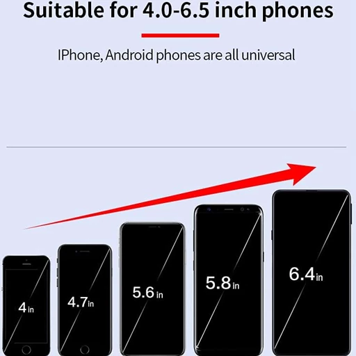 سازگار با تمام گوشیهای موبایل که از شارژ بیسیم Qi پشتیبانی میکنند، سایز 4.7 تا 6.7 اینچ