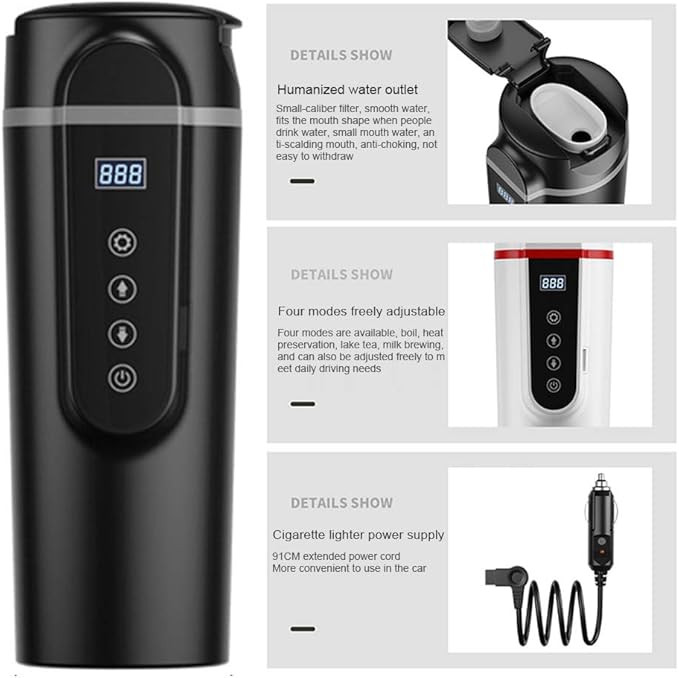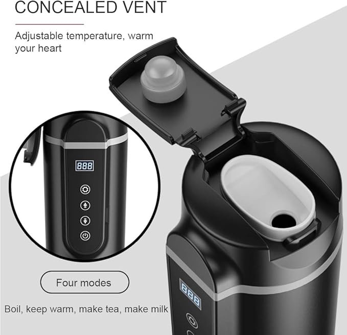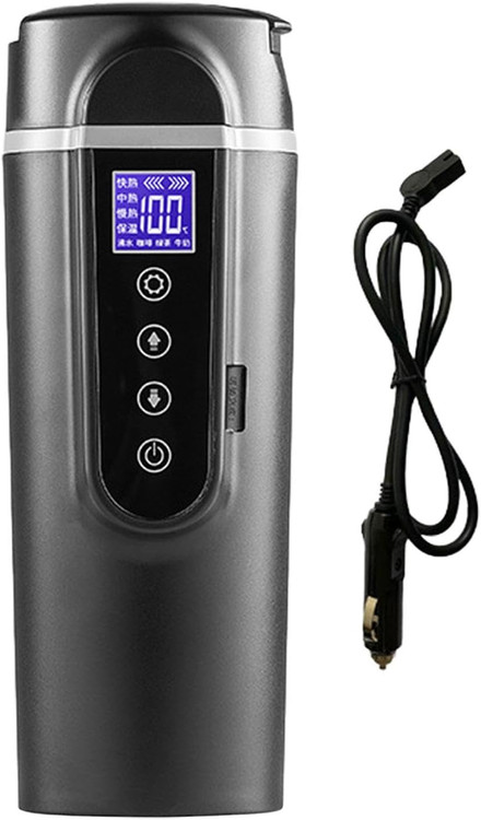 【فنجان گرمایش خودرو】: کتری مسافرتی قابل حمل با عملکرد گرمایش خودکار و نمایش دما، طراحی دمای ثابت و صفحه نمایش LED برای نمایش دما در زمان واقعی