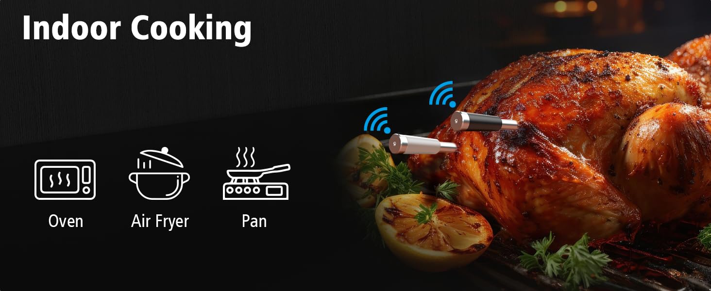 پرابهای بیسیم دوگانه با دقت ۱.۸± درجه فارنهایت و دستههای سرامیکی تا ۷۵۲ درجه فارنهایت برای طیف وسیعی از ظروف پخت و پز مقاوم در برابر حرارت هستند. دمای دقیق برای پخت و پز ضروری است، بنابراین دیگر هرگز نگران غذای نپخته یا بیش از حد پخته شده نخواهید بود.