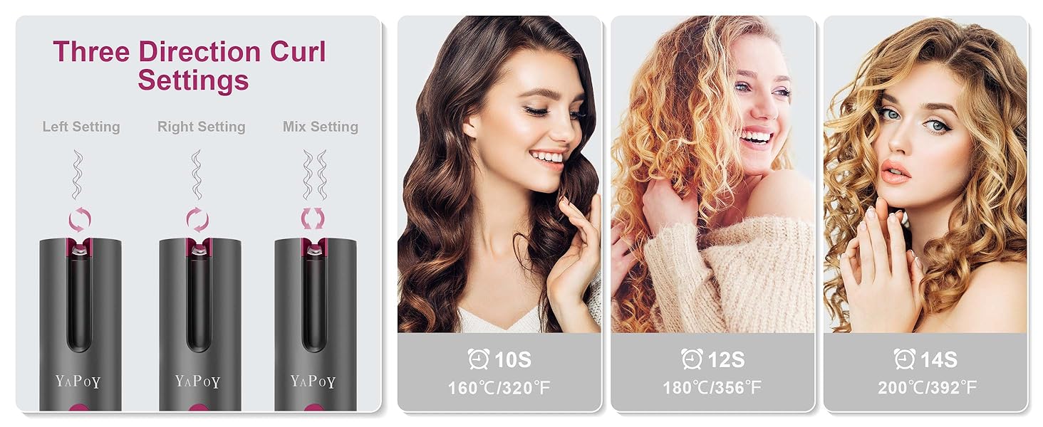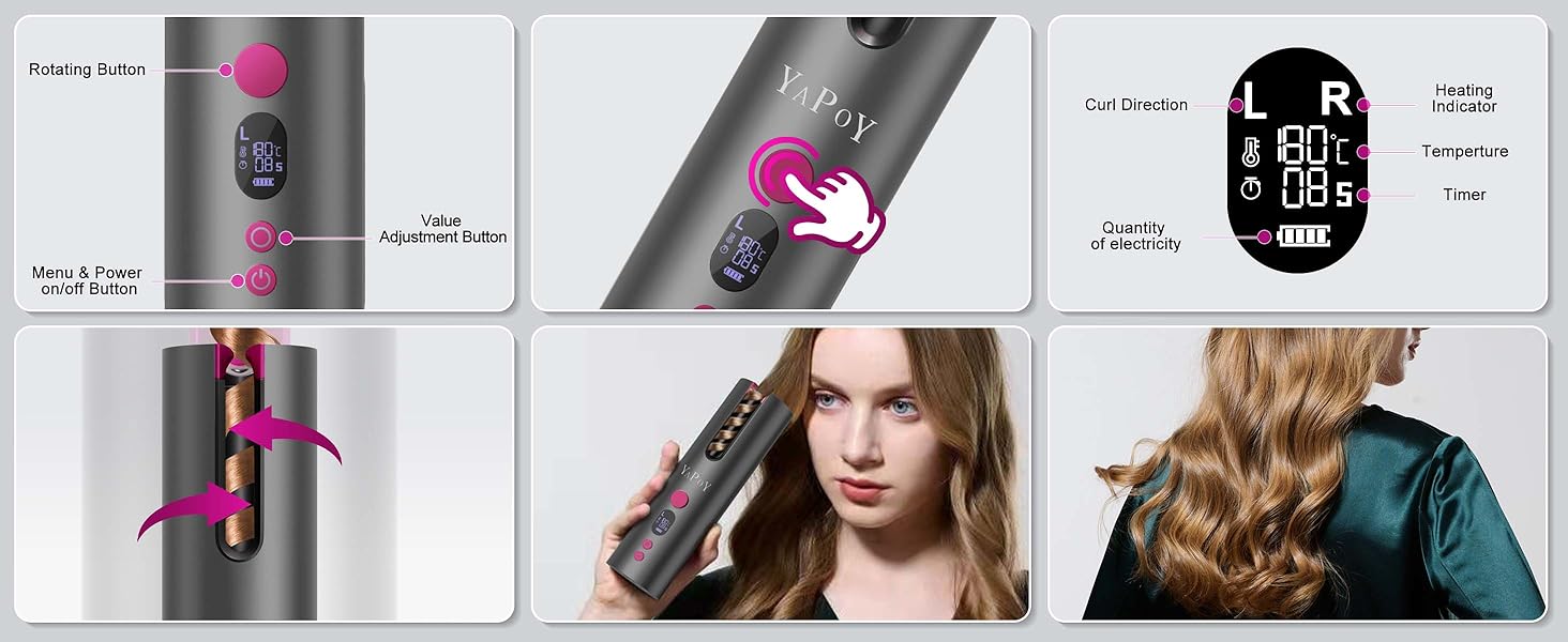 فرکننده را میتوان آزادانه با توجه به تنظیمات مختلف گرما، تنظیمات تایمر و جهتهای انحنا (چپ/راست/مختلط) تنظیم کرد، همه چیز روی صفحه LCD نمایش داده میشود تا به جلوههای مورد نظر خود برسید و میتوان آن را به سرعت گرم کرد. در مقایسه با فرکنندههای موی سنتی، این گیره فرکننده میتواند مطابق نیاز شما موج ایجاد کند و مدلهای موی فرتری ایجاد کند.