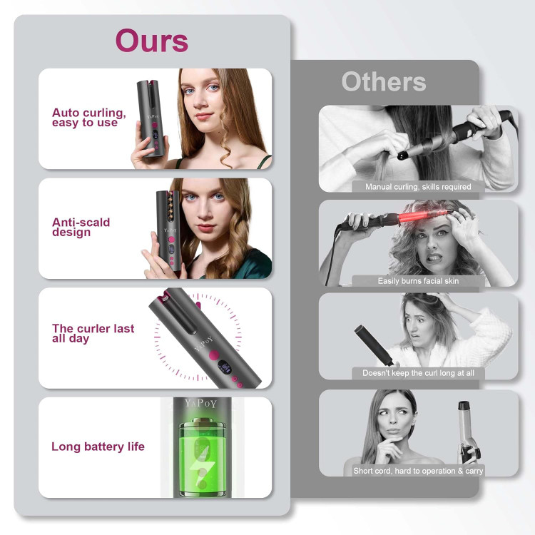 باتری قابل شارژ داخلی با زمان کار ۶۰ دقیقه و شارژ کامل ۳-۴ ساعت، با وزن خالص ۰.۳۵ کیلوگرم و زمان گرم شدن بسیار کوتاه، این فرکننده مو فرآیند حالت دادن را بسیار آسان و سریع میکند. فناوری خودکار ثبت شده به شما این امکان را میدهد که موهای خود را بپیچید و به طور خودکار در ۸ ثانیه در خانه یا هر کجا که میروید، فر ایجاد کنید.