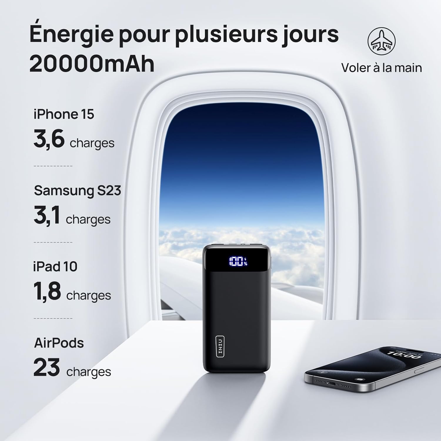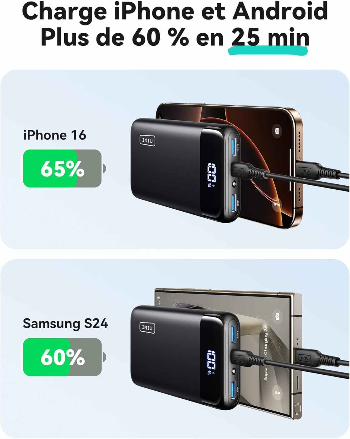 چندین باتری شما خالی هستند؟ 3 دستگاه را به طور همزمان با بالاترین سرعت با فناوری اختصاصی UPower+ INIU شارژ کنید.