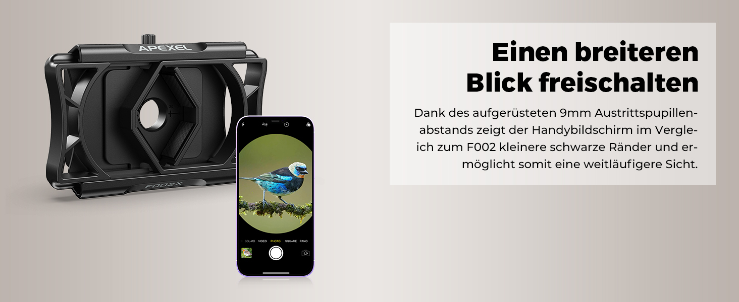 میتواند از ضبط تلفن همراه به صورت افقی و عمودی پشتیبانی کند، فاصله لنز تلفن همراه تا چشمی تجهیزات اپتیکی را کاهش میدهد (۹ میلیمتر)، تصاویر را واضحتر میکند، پیچهای ثابت را برای جلوگیری از جابجایی پس از اتمام فوکوس افزایش میدهد.