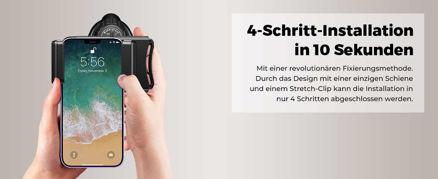 ساختار یک تکه دو طرفه ساخته شده از ABS، نصب آسان و سریعی دارد و از شل شدن جلوگیری میکند، با یک پد سیلیکونی روی سطح که گوشی را به چشمی متصل میکند تا از گوشی و لنز دستگاه نوری محافظت کند، و یک نوار سیلیکونی در داخل نگهدارنده گوشی برای فشار دادن دکمههای گوشی.
