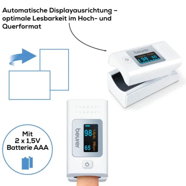 پالس اکسیمتر Beurer PO 35، برای کنترل عملی اشباع اکسیژن شریانی و ضربان قلب (نبض) در خانه و در حال حرکت.