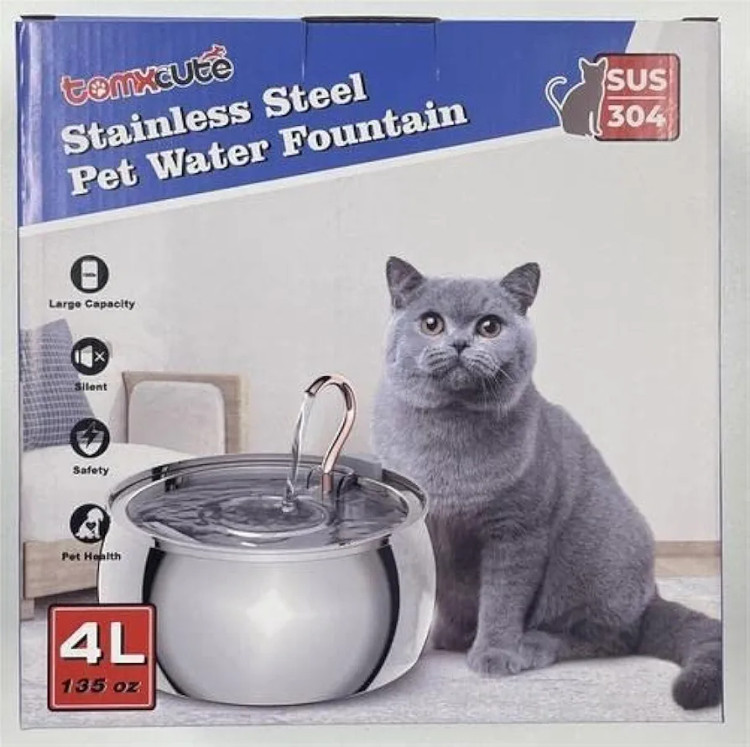 آبخوری خودکار سگ و گربه جنس استیل ضد آلرژی برند : tomxcute ـ sus 304 - 4L 135 OZ