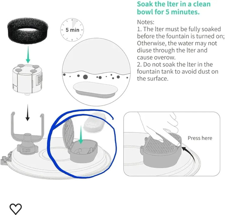 ۴. سیستم فیلتر دوگانه : با فیلتر کربن فعال و اسفنج پیش فیلتر، آبنمای خودکار گربه و سگ به طور موثر آب را تصفیه می کند و اطمینان حاصل می کند که حیوانات خانگی شما به آب آشامیدنی تمیز و سالم دسترسی دارند.