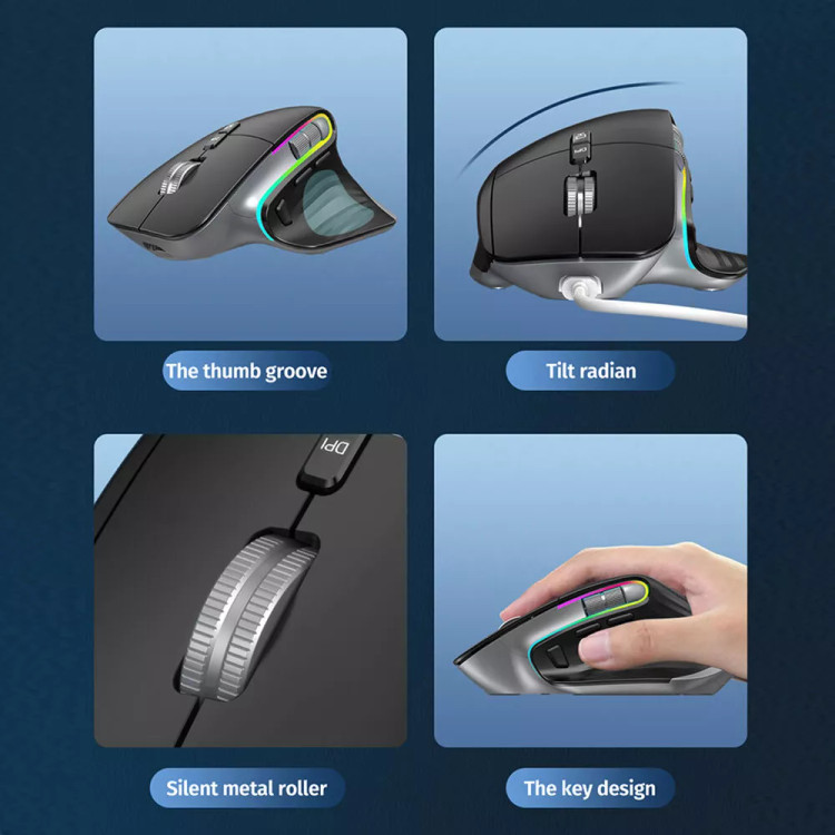 موس بی سیم LED برند PHYLINA مدل M10 با طراحی ارگونومیک این ماوس بی سیم LED فقط با شکل دست راست مطابقت دارد و از کف دست و شست شما پشتیبانی بهتری می کند.