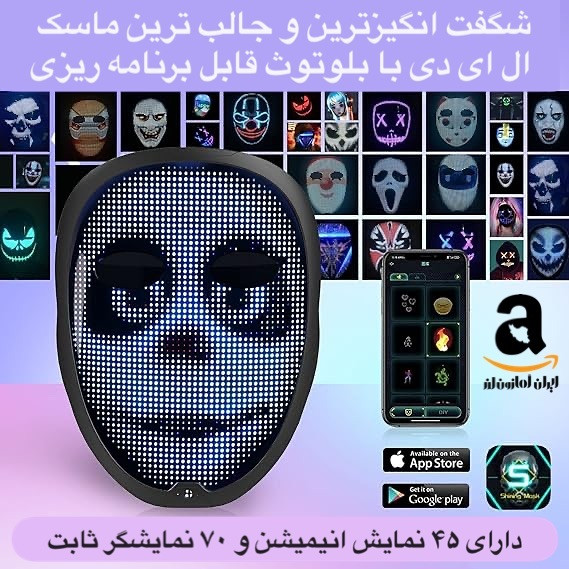 کاربرد : ماسک هوشمند قابل برنامه ریزی با بلوتوث جهت مراسمات تولد، هالوین و …