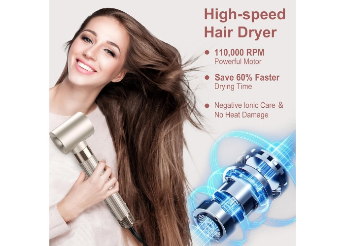 موتور پرسرعت حرفه ای BRUSHLESS: این موتور پرسرعت تا 110000 دور در دقیقه سرعت بالا و جریان هوای قوی تا 19 متر بر ثانیه تولید می کند که 6 برابر بیشتر از یک ابزار استایل معمولی جریان هوای قوی دارد و زمان استایل خود را به نصف کاهش می دهد. خشک شدن سریع بدون آسیب حرارتی نوآوری برای تجربه یک ظاهر طراحی قابل توجه.