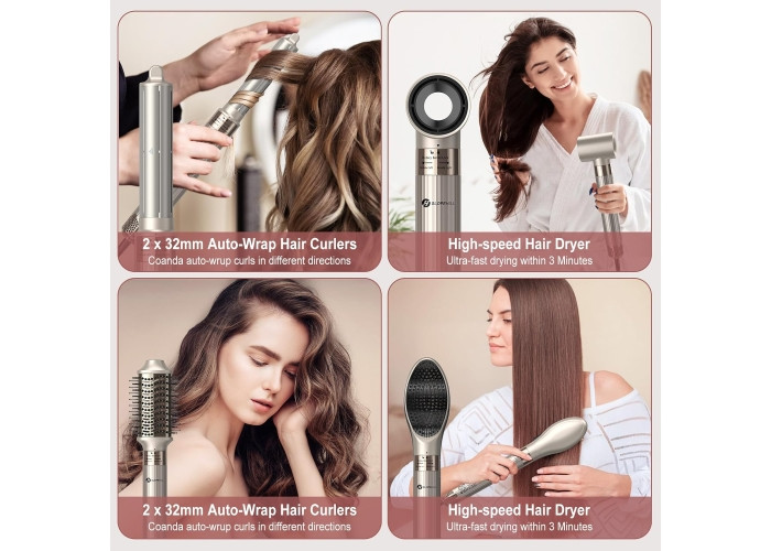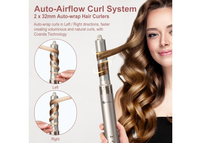 فر کننده اتوماتیک بادی: اتو فر کننده اتوماتیک با بیگودی 2×32 میلی متری در جهات مختلف. جریان هوای قوی از اتو فرفری خارج می شود و به طور مداوم یک جریان هوای اطراف آن را در جهت عقربه های ساعت تشکیل می دهد که اثر کوآندا را افزایش می دهد. دسته سبک ارگونومیک و طناب چرخشی 360 درجه، کار با آن را در هنگام استایل راحت تر می کند. شما می توانید یک مینی آرایشگاه ایجاد کنید. در خانه داشته باشید