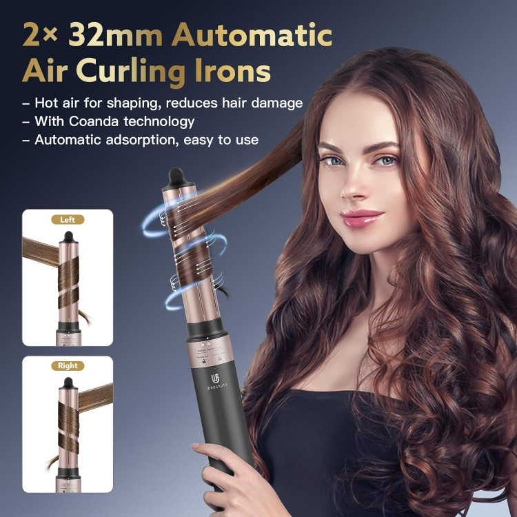 اتو فر کننده اتوماتیک: اتو فر کننده 2×32 میلی متری در جهت چپ/راست، اندازه راحت برای فر زیبا، با تکنولوژی کوآندا، جریان هوای مداوم قوی تضمین می کند که مو به طور خودکار به سطح فر کننده هوا مکیده می شود و طبیعی است. در مقایسه با فرهای معمولی، می تواند به طور موثرتری آسیب را کاهش دهد. با گرمای شدید 200 میلیون یون منفی، پوشش سرامیکی، +35٪ درخشندگی، +30٪ صاف کردن، -30٪ موخوره، مراقبت با کیفیت از مو را به شما می دهد.