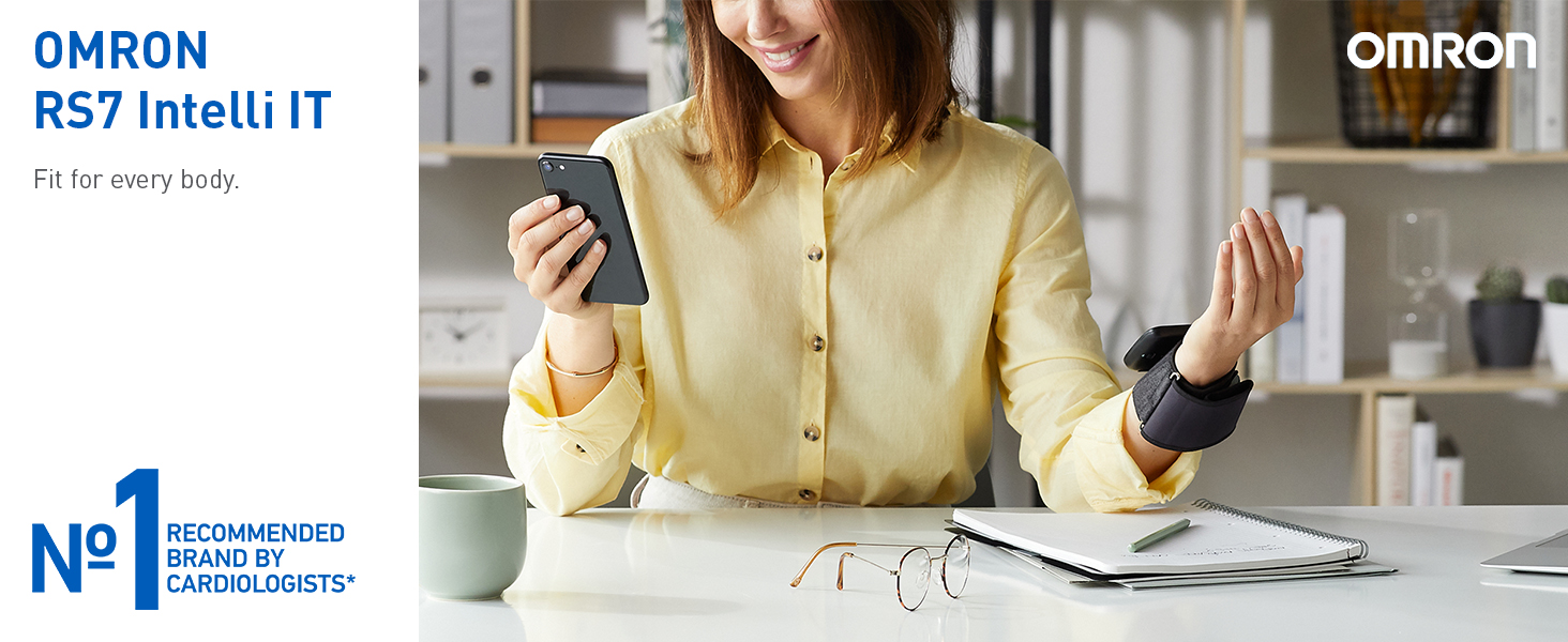 - دستگاه OMRON RS7 Intelli IT اندازهگیری دقیق فشار خون شما را صرف نظر از نوع بدنتان آسان میکند.