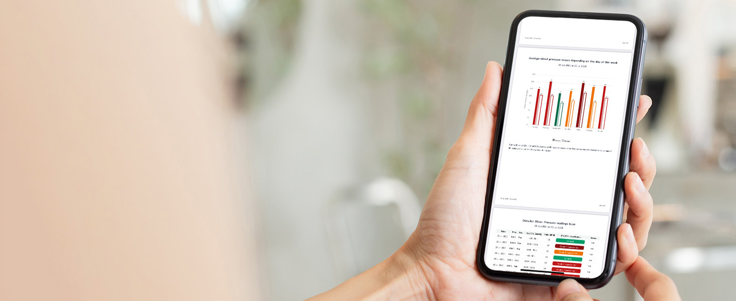 هنگام اندازهگیری، دستگاه یافتههای ضربان قلب نامنظم یا فشار خون بالا را نشان میدهد و نظارت هوشمند به طور خودکار نتایج را از طریق بلوتوث به برنامه رایگان OMRON connect برای iOS/Android به تلفن شما بهروزرسانی میکند.